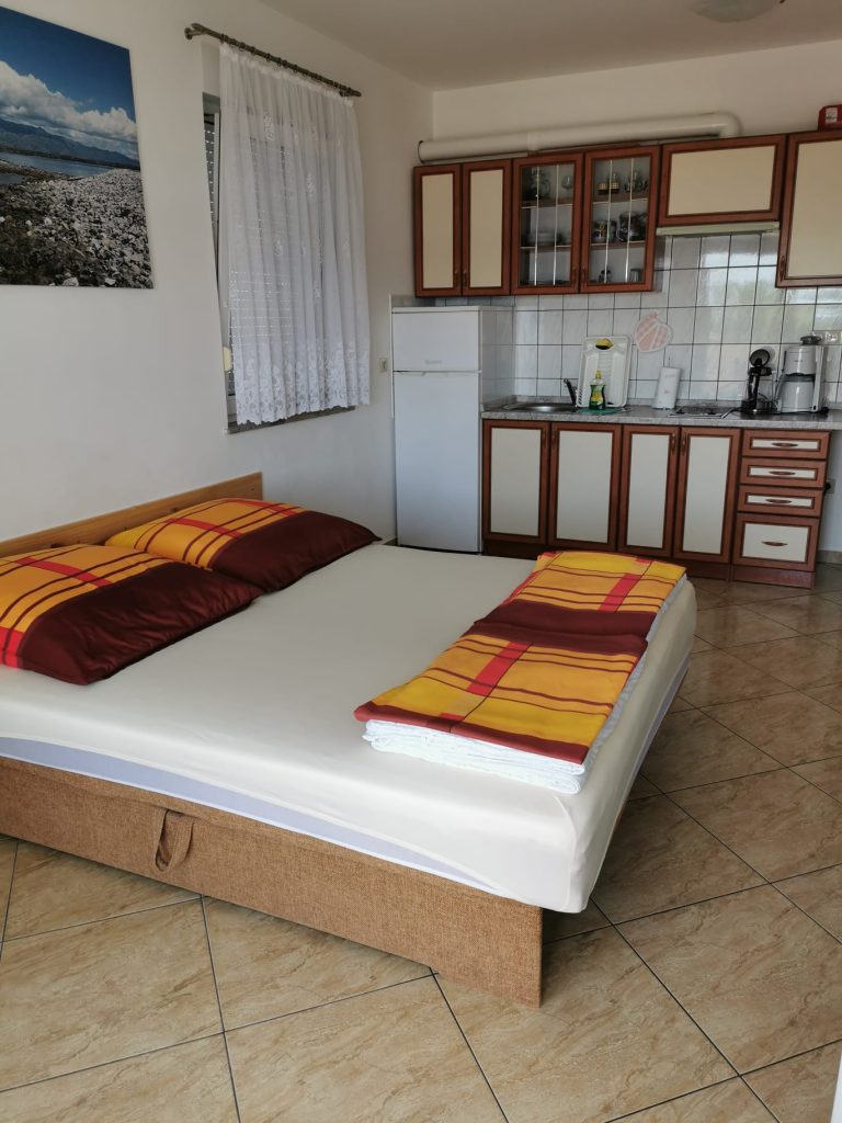 In unserem praktisch eingerichtetem Wohn-/Essraum fehlt es Ihnen an nichts. Zusätzlich steht Ihnen hier ein weiteres, teilbares Doppelbett zur Verfügung. Die Gesamtgröße des Apartments beträgt. ca. 50m²
